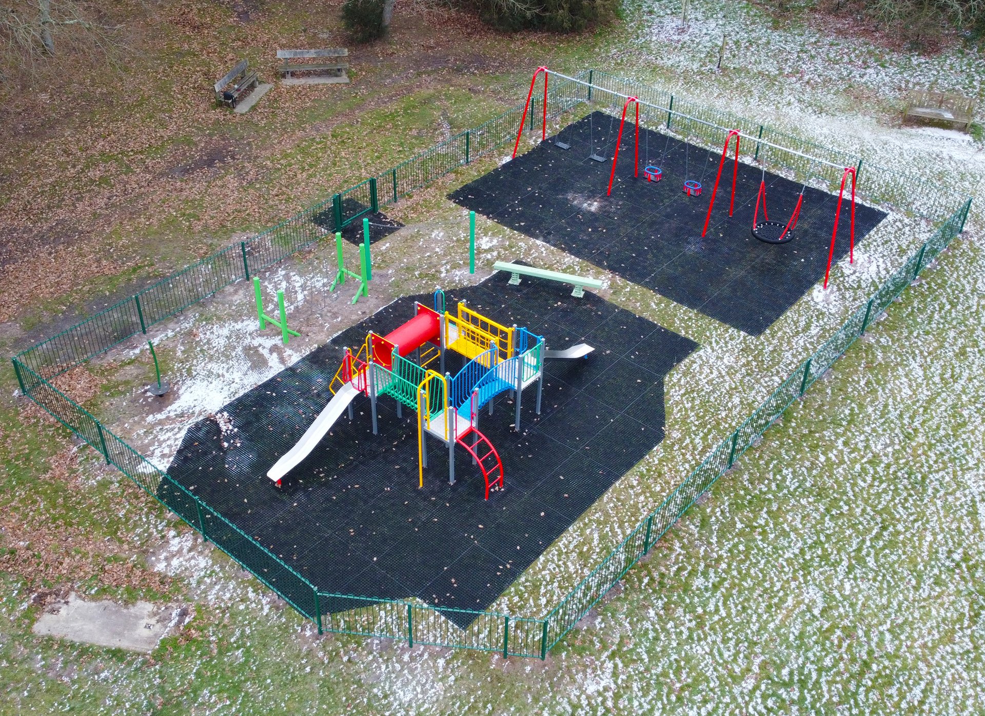 Durable galvanised steel equipment was selected to improve longevity and reduce ongoing maintenance requirements compared to the previous timber installation. Impact absorbing surfacing was installed beneath key play areas, and new low level bowtop fencing was added to clearly define the space while maintaining visibility and ease of supervision.